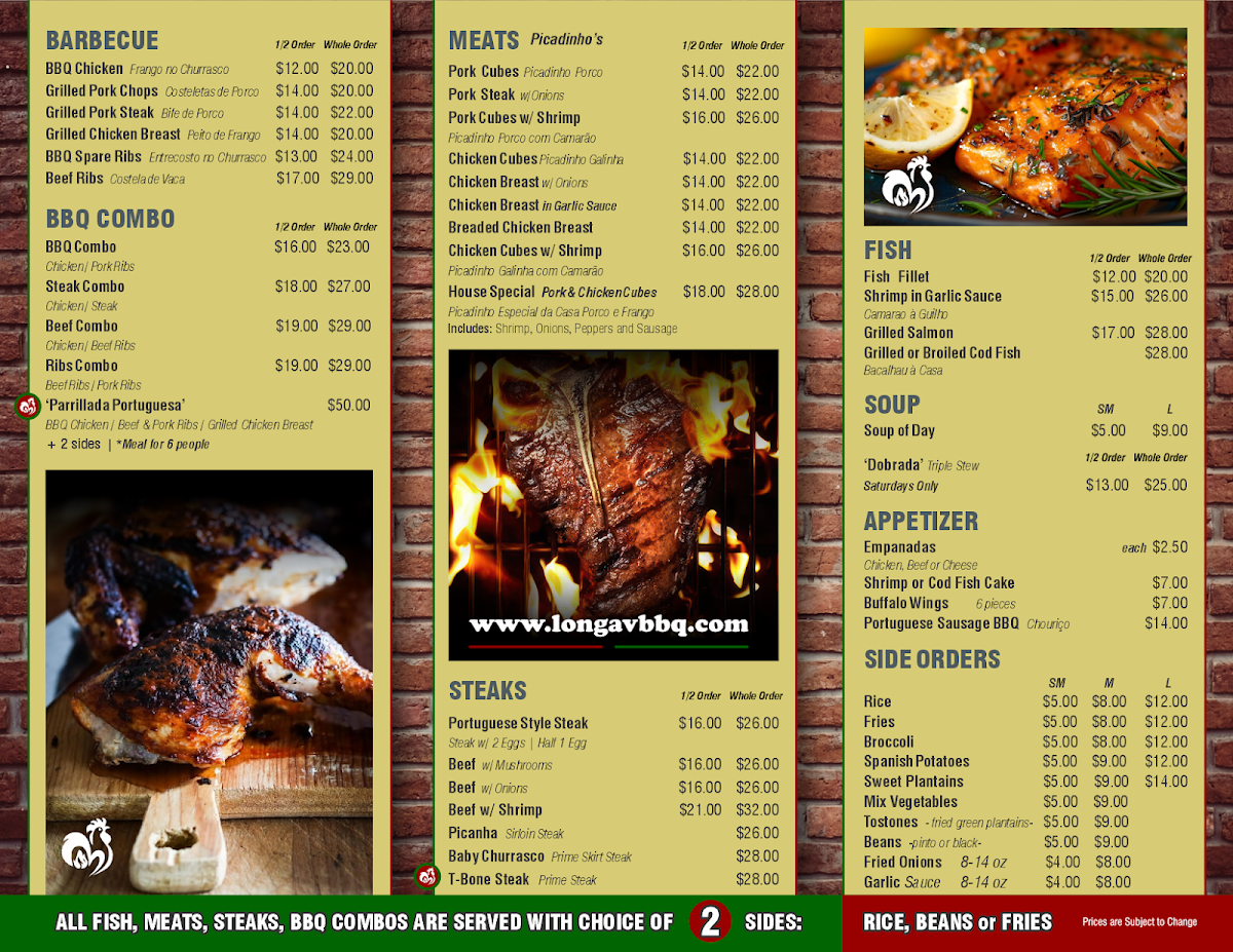 At Long Ave BBQ, the menu is brimming with authentic Portuguese offerings. The Fish Fillet is a fan favorite, elegantly priced at $12 for a full portion or $20 for a half, showcasing the delicate flavors of the sea. For shrimp lovers, the Shrimp in Garlic Sauce at $15 is a must-try, and it pairs perfectly with a side of the renowned Camarao à Guilho, which tantalizes your taste buds at $26. For those seeking a heartier option, the Grilled Salmon for $17 or the traditional Bacalhau à Casa cod fish at $28 will not disappoint, both beautifully grilled to perfection.